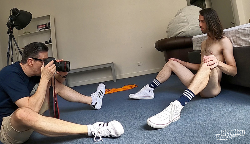 Fit Aussie porn star Carter Andrews showing off naked in the Bentley Race studio
